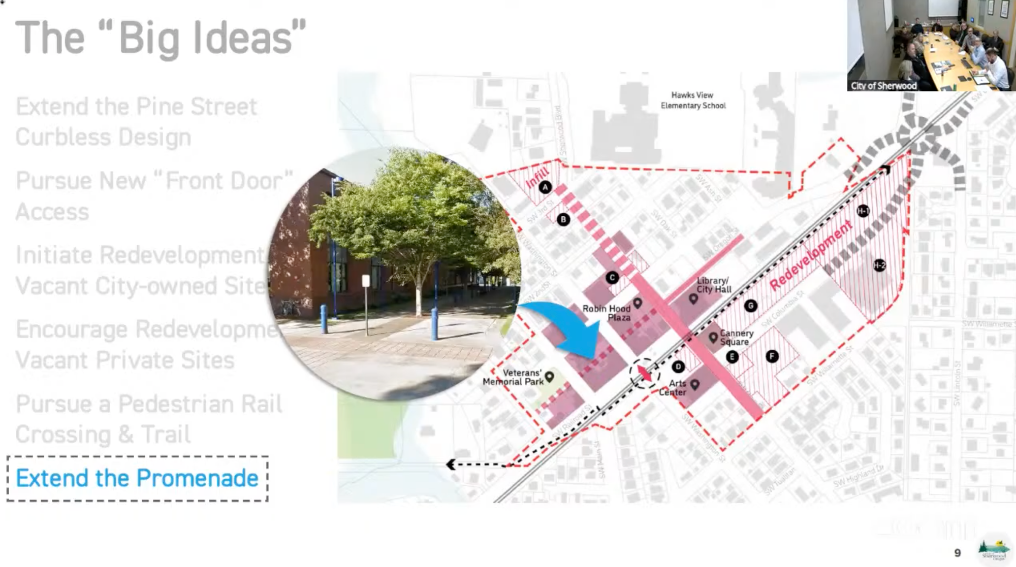 In a preliminary work session, the Sherwood City Council discussed development of the vacant lot at the Sherwood Center for the Arts as well as the full Old Town Strategic Action Plan vision.