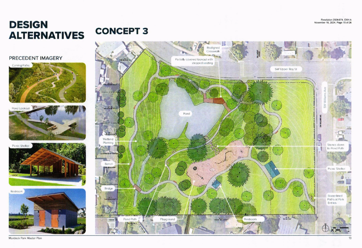 On November 4, 2025 the Sherwood City Council entered a contract for Murdock Park’s master plan construction with Portland-based Lango Hansen Landscape Architects for a total project cost of $210,507.