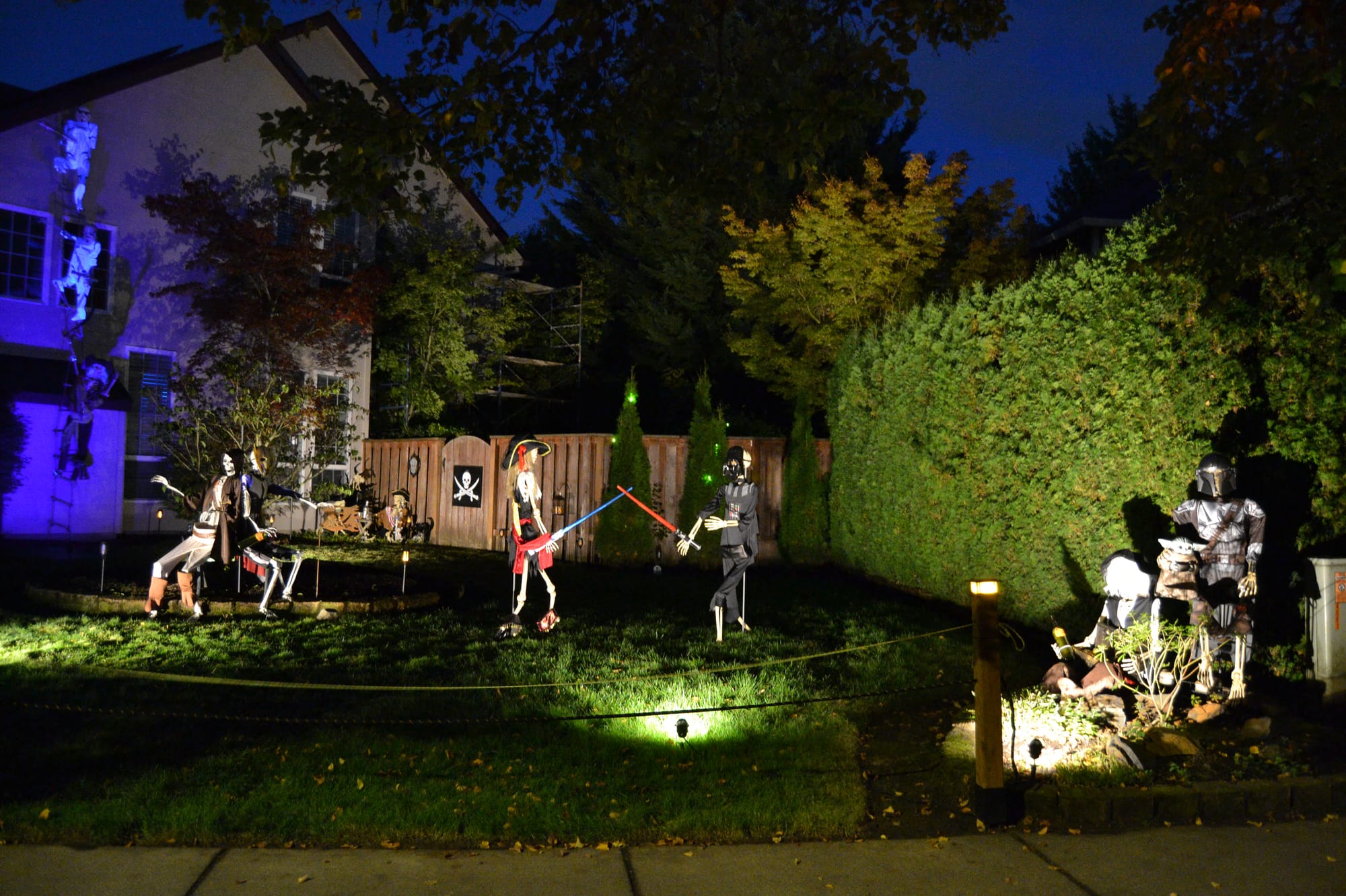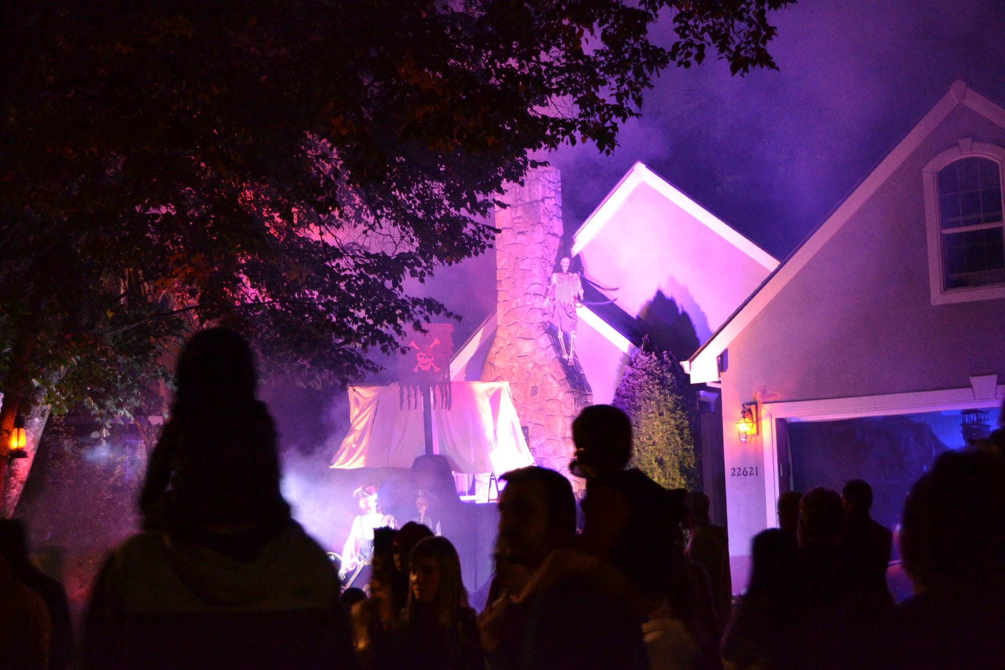 It's free to come out and see the displays, the show, and trick-or-treat, with sponsors helping to raise money for the Sherwood Education Foundation (SEF). About 20 houses along the street play along with pirate-themed Halloween decor, with eight households active in creating the show.