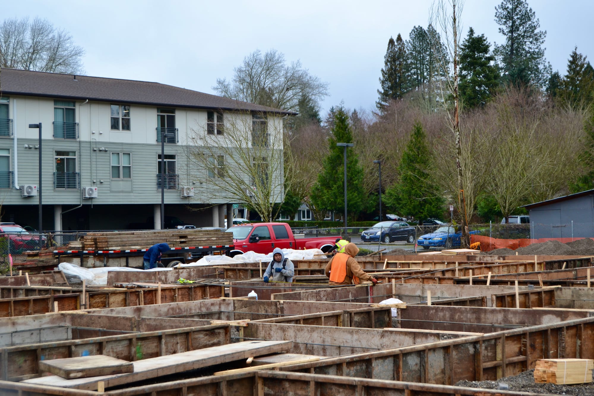 Construction is ongoing at Rock Point Construction's apartment development in Old Town. (Jules Rogers/Sherwood Sun)