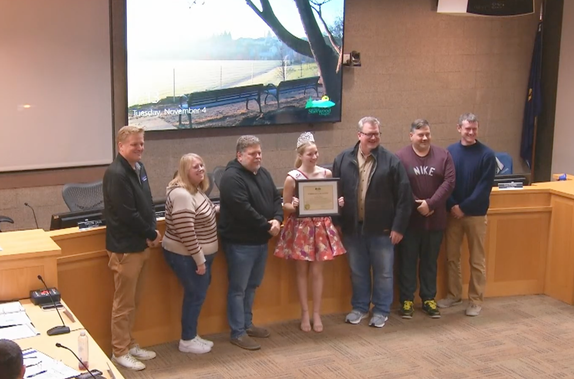 At the meeting, councilors recognized Sherwood’s seventh-grade, 12-year-old Noelle Gush, who was crowned National American Miss Oregon Preteen at the Miss Oregon Scholarship Program pageant held in Seaside last June.
